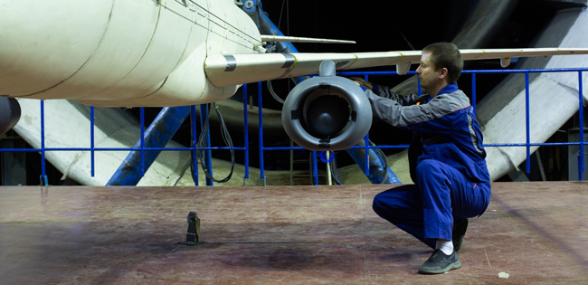 Пилон, выполненный из титановых сплавов и стали, имеет форму балки и крепится к силовой части крыла с помощью нескольких узлов навески. На первом этапе специалисты отделения статической и тепловой прочности ФАУ «ЦАГИ» провели цикл экспериментальных исследований на способность агрегата выдержать нагрузки, возникающие на взлетно-посадочных режимах и при различных маневрах самолета в полете. Было реализовано восемь случаев нагружения до эксплуатационного и максимального расчетного уровней. В итоге доказана требуемая прочность конструкции пилона и узлов его навески.