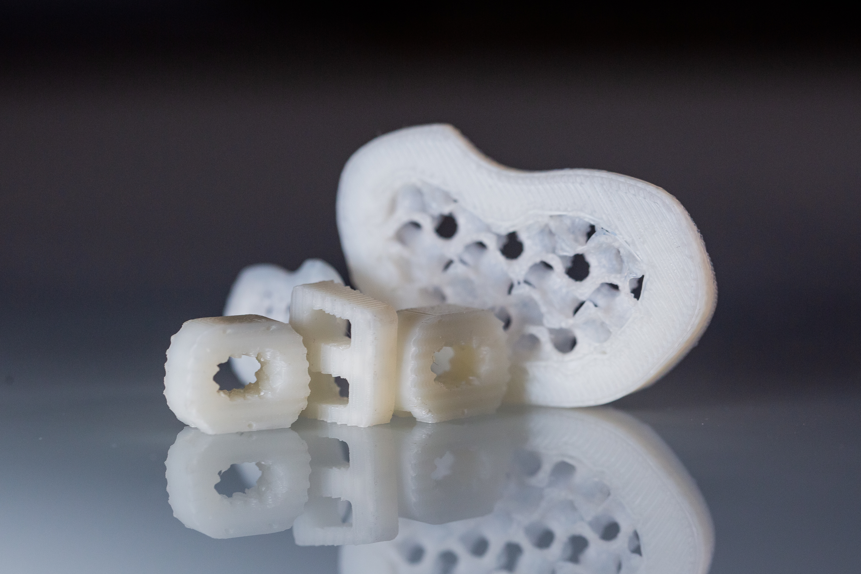 Столь сложную "геометрию" непросто воплотить в реальность: классические методы обработки материала здесь уже не подходят. А вот с помощью аддитивных технологий (3D-печать) можно создавать изделия нужной структуры и регулировать их свойства. Эти технологии открывают возможности для создания как стандартных, так и персонализированных изделий: можно изготовить кейдж, идеально повторяющий поверхность позвонков конкретного пациента, и это позволит оптимально компенсировать изменение анатомии в результате травмы.