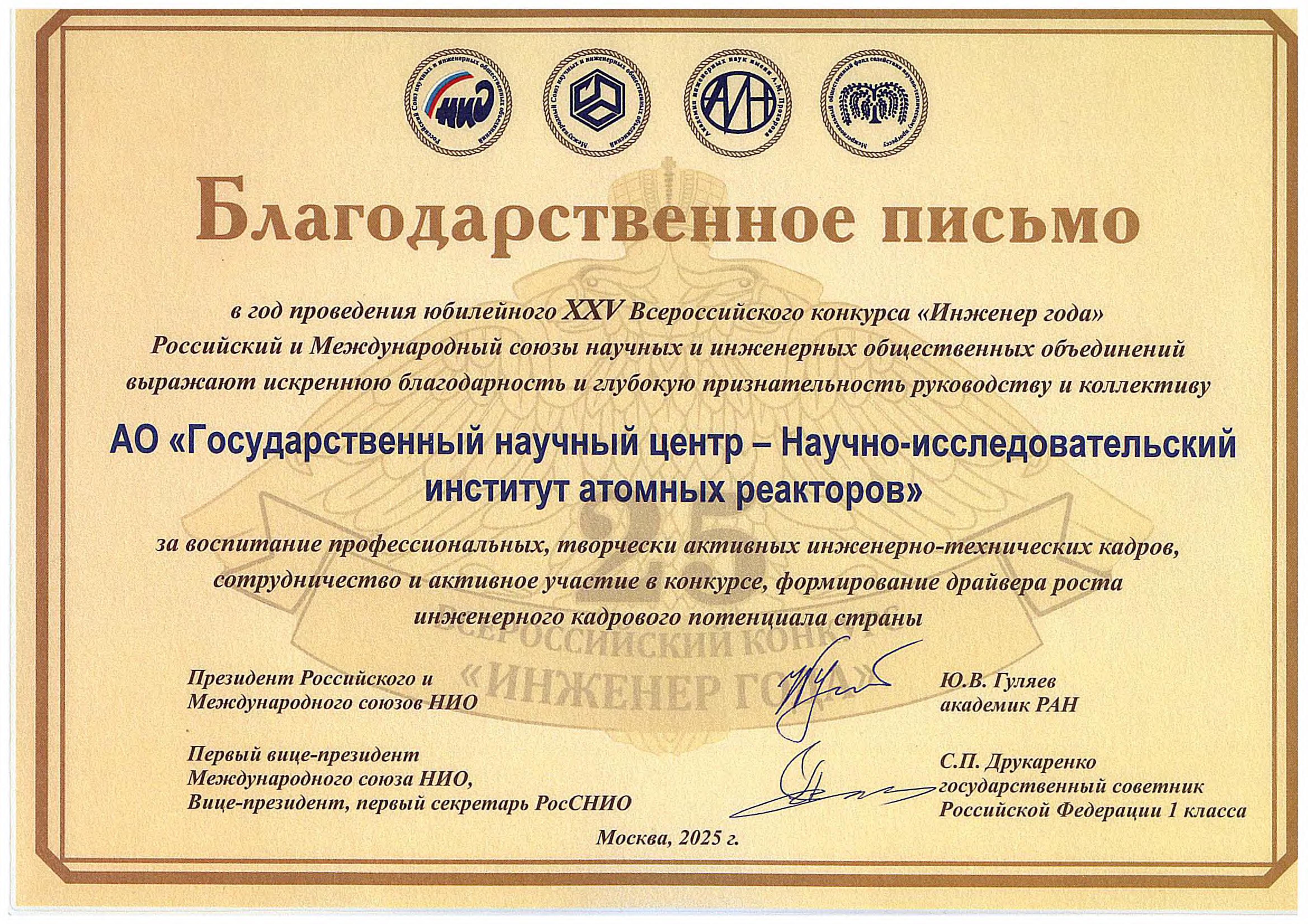 «Интеллектуальная собственность является важной составляющей государственных программ, нацеленных на достижение технологического лидерства страны. Отрадно, что ГНЦ НИИАР, будучи якорным участником регионального ядерно-инновационного кластера, активно развивает свою научно-производственную программу. Используя меры государственного стимулирования новых научных разработок, предприятие вносит вклад в развитие рынка интеллектуальной собственности, популяризацию изобретательской и рационализаторской деятельности», – заключил руководитель Агентства инновационного развития Ульяновской области Альберт Гатауллин.